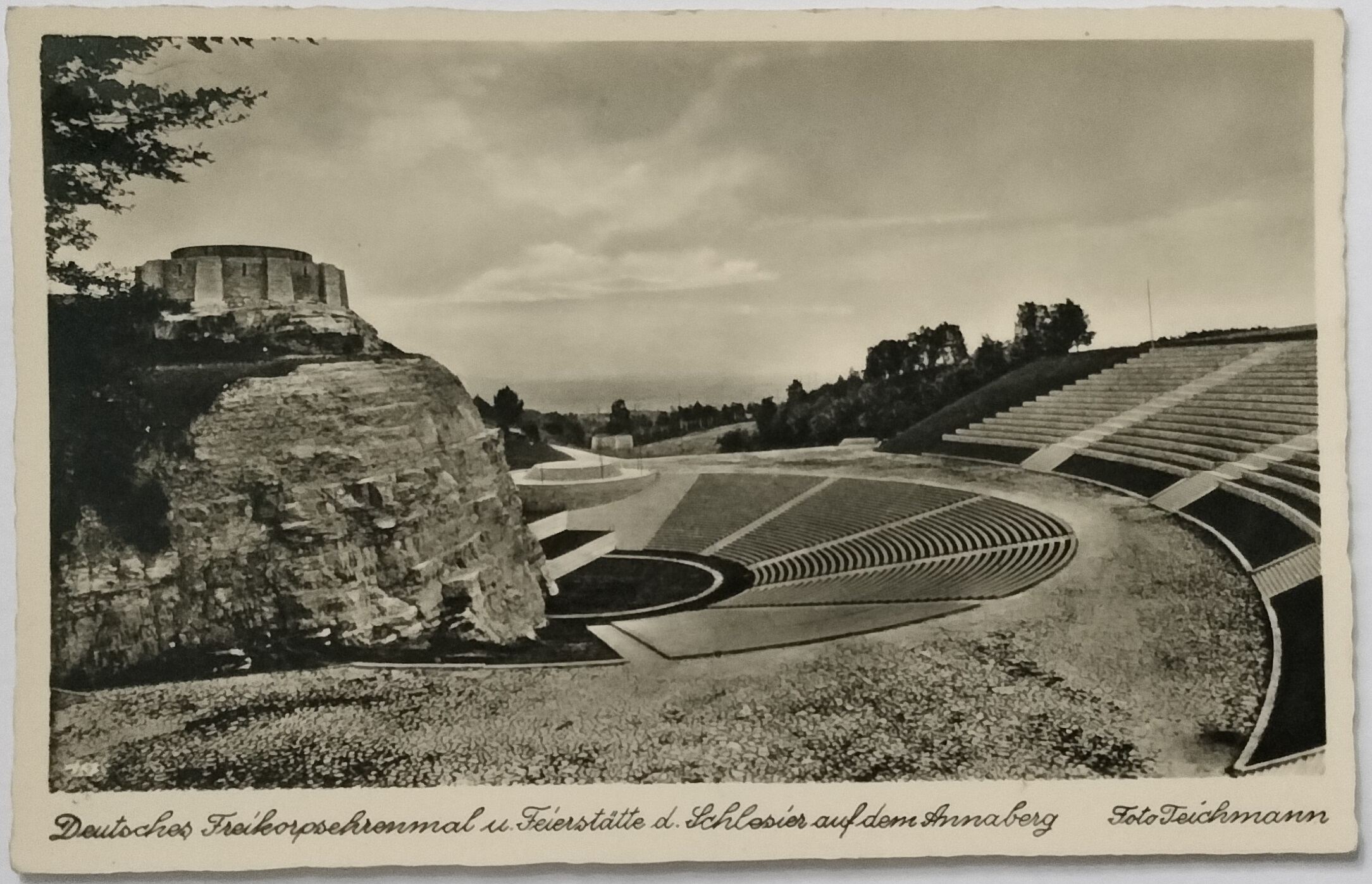 | KP 2025-003 | Deutsches Freikorpsdenkmal u. Feierstätte der Schlesier auf dem Annaberge | Obieg: bez Fotografia: Teichmann Wymiary: 14 x 8,9 cm Technika: Druk na podstawie fotografii Materiał: Papier/Farby drukarskie Wydawca: Verl. Alfons Rudoll, St. Annaberg |